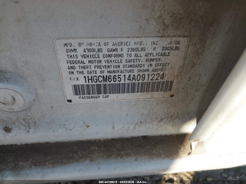 • 1HGCM66514A091224