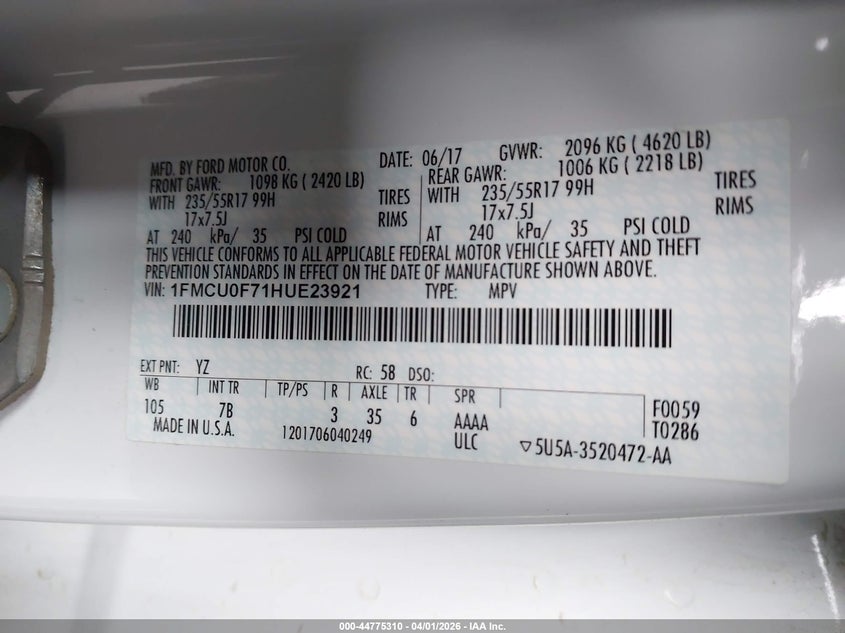 • 1FMCU0F71HUE23921