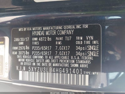 • 5XYZU3LB4HG491401
