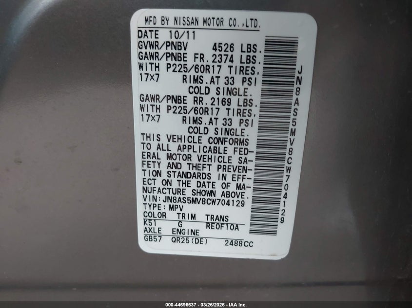 • JN8AS5MV8CW704129