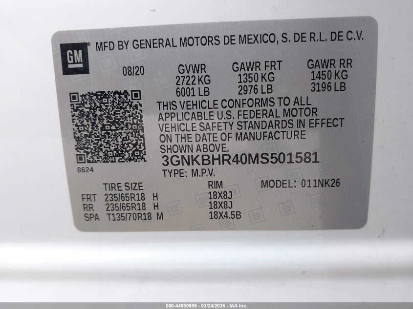 • 3GNKBHR40MS501581
