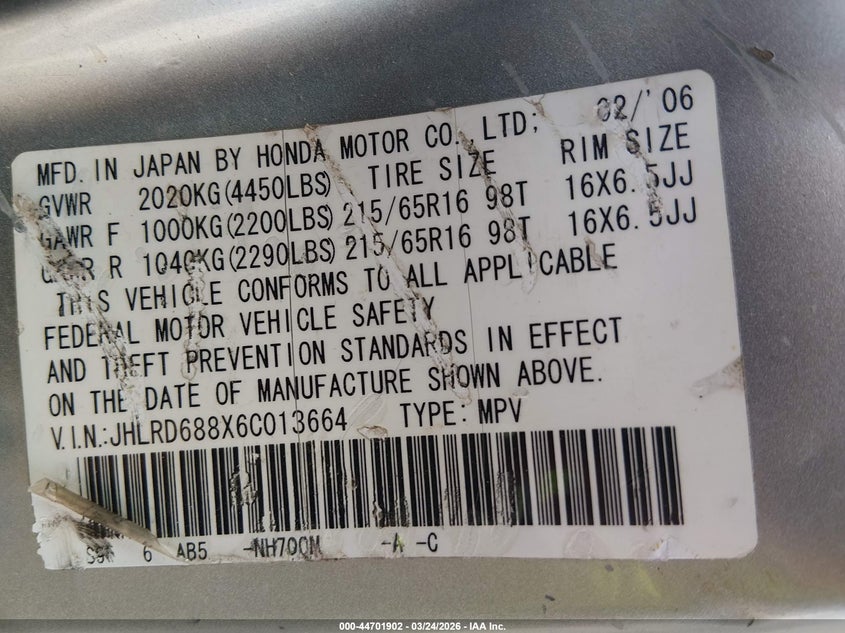 • JHLRD688X6C013664