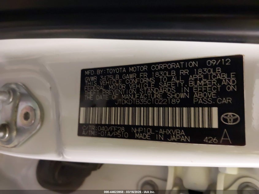• JTDKDTB35C1022189