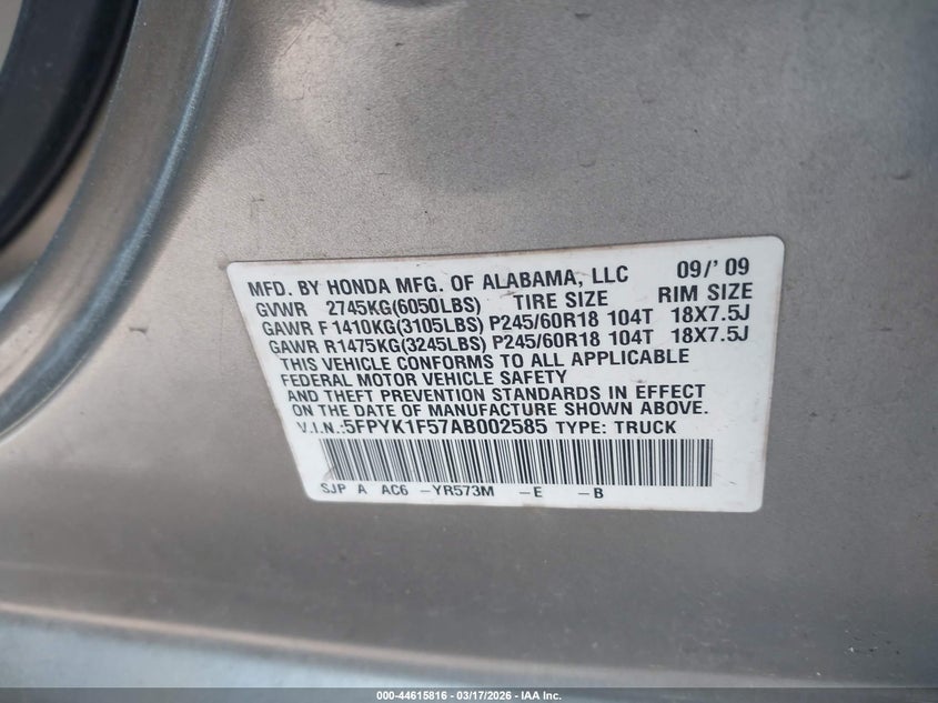 • 5FPYK1F57AB002585
