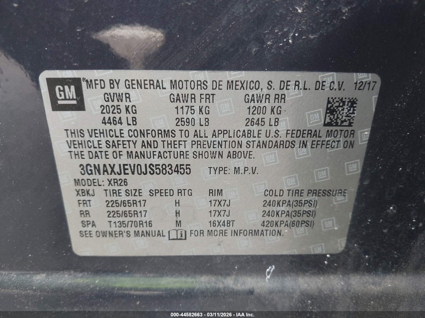 • 3GNAXJEV0JS583455