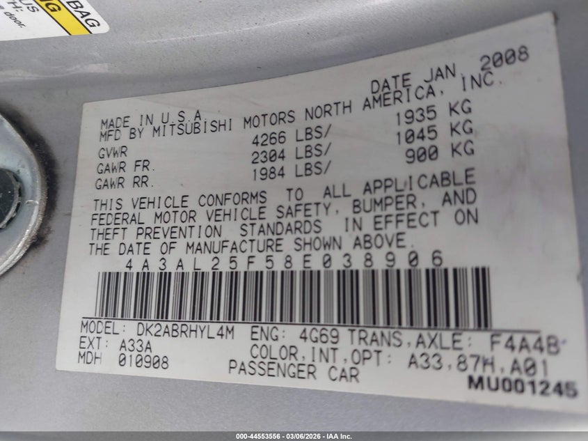 2008 MITSUBISHI ECLIPSE SPYDER GS for Sale in Florence, TX