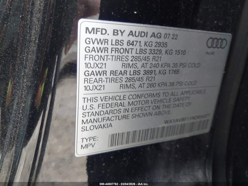 2022 AUDI Q8 PREMIUM 55 TFSI QUATTRO TIPTRONIC for Sale in Houston, TX