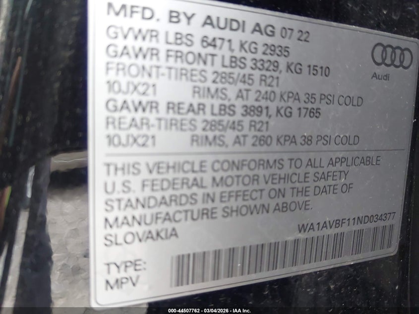 • WA1AVBF11ND034377