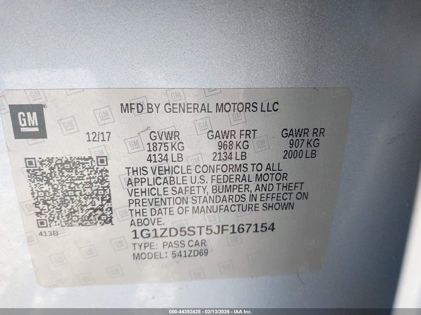 • 1G1ZD5ST5JF167154