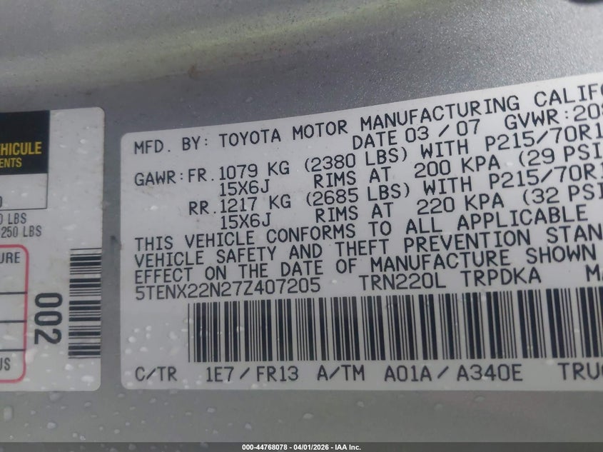 • 5TENX22N27Z407205