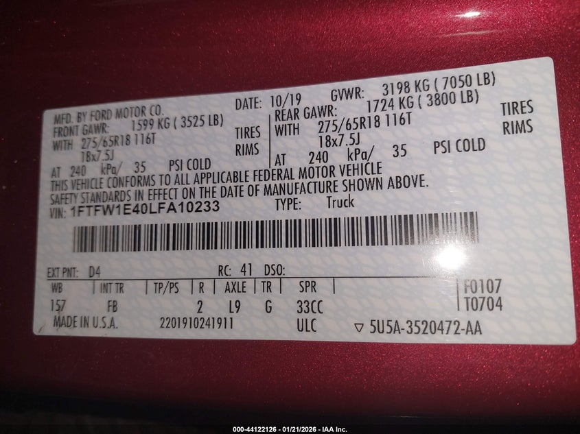 • 1FTFW1E40LFA10233