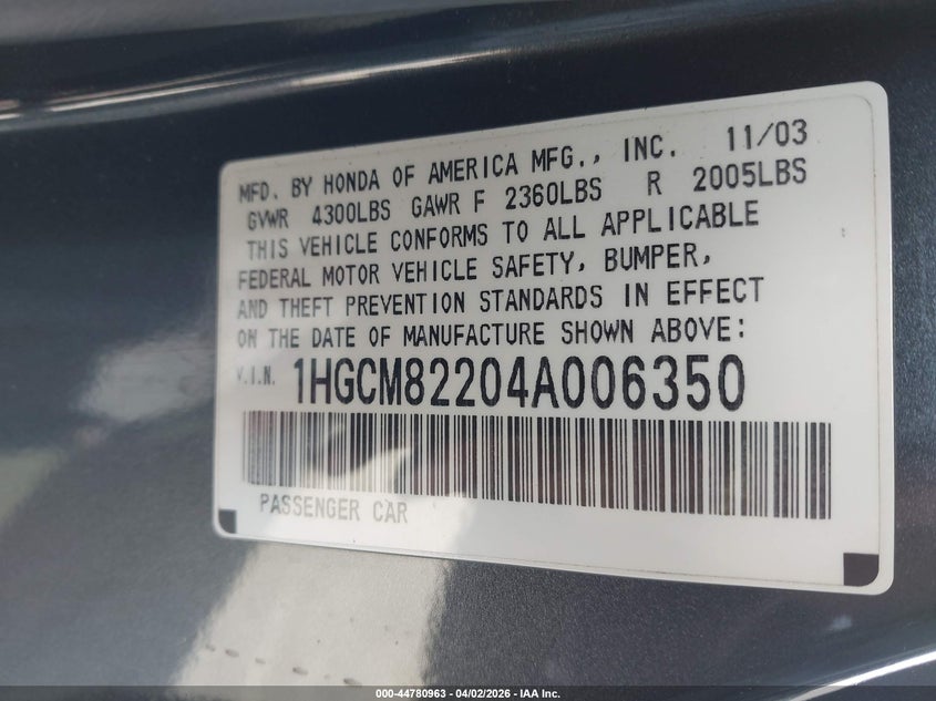 • 1HGCM82204A006350