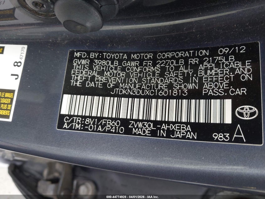 • JTDKN3DUXC1601813