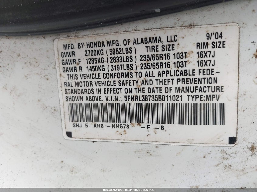• 5FNRL38735B011021