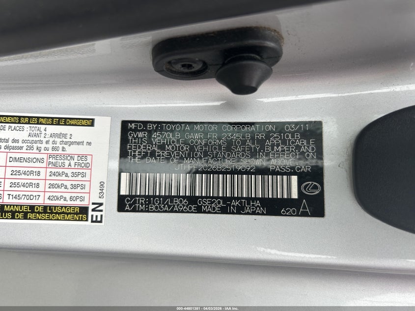 • JTHFF2C26B2519092