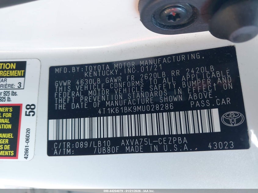 • 4T1K61BK9MU028286