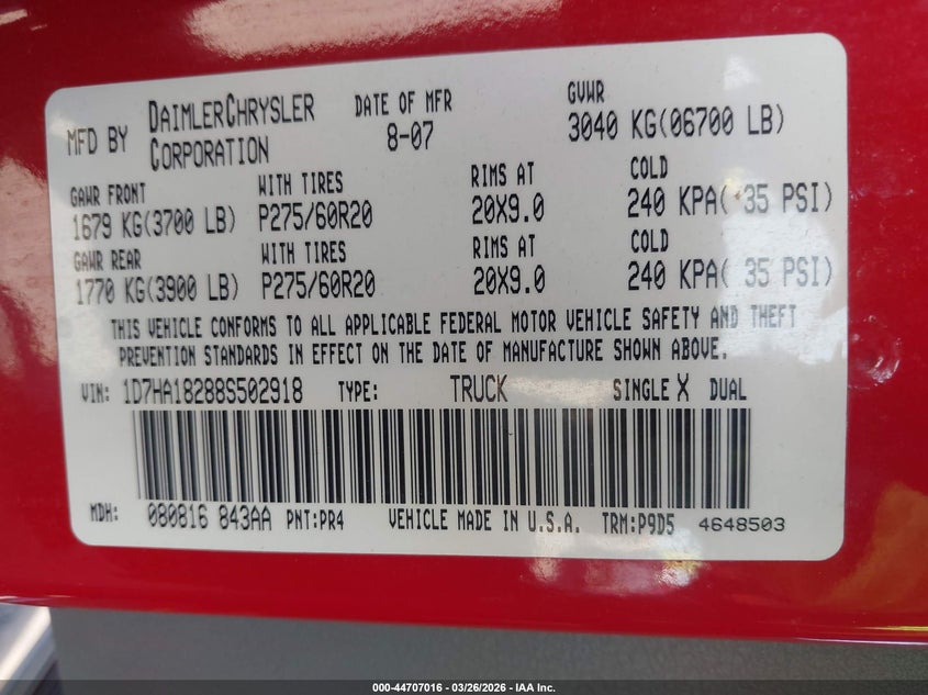 • 1D7HA18288S502918