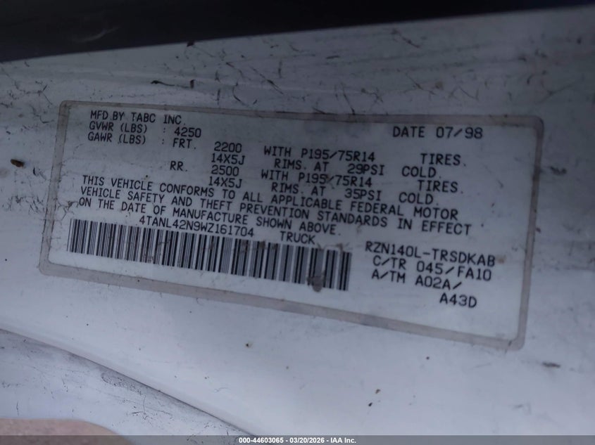 • 4TANL42N9WZ161704