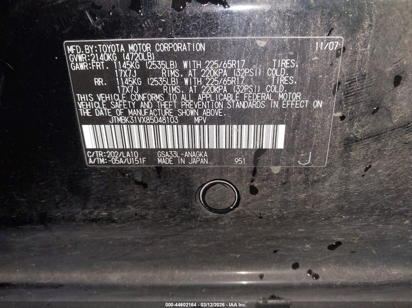 • JTMBK31VX85048103