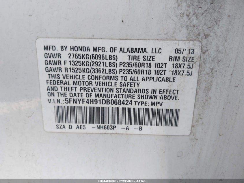 • 5FNYF4H91DB068424