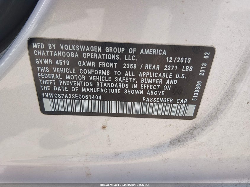 • 1VWCS7A33EC061404