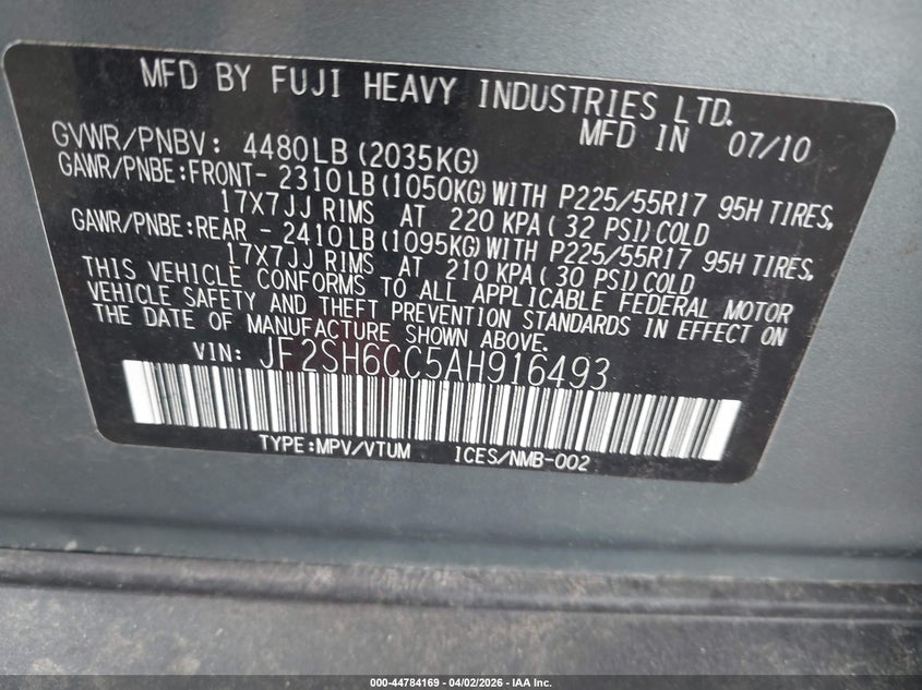 • JF2SH6CC5AH916493