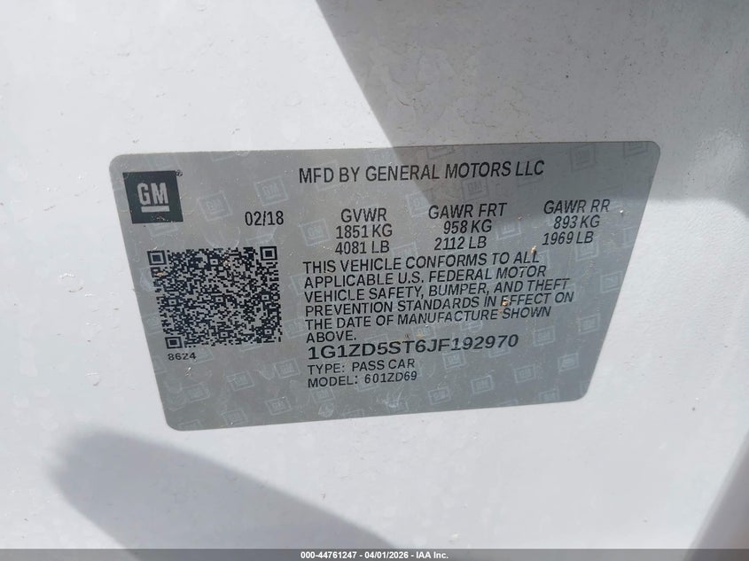 • 1G1ZD5ST6JF192970