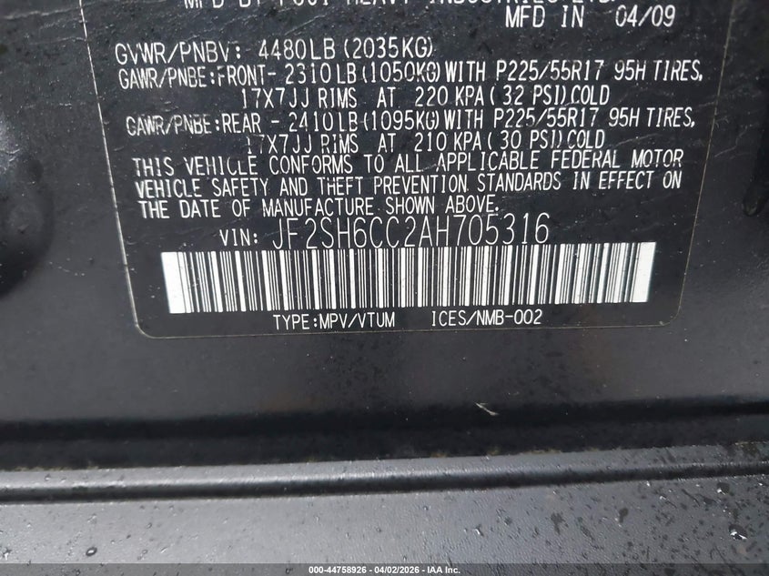 • JF2SH6CC2AH705316