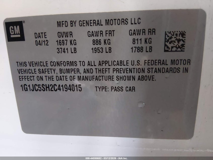 • 1G1JC5SH2C4194015