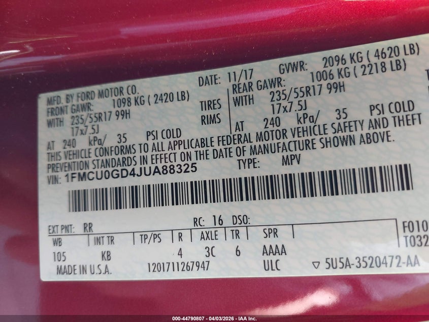 • 1FMCU0GD4JUA88325