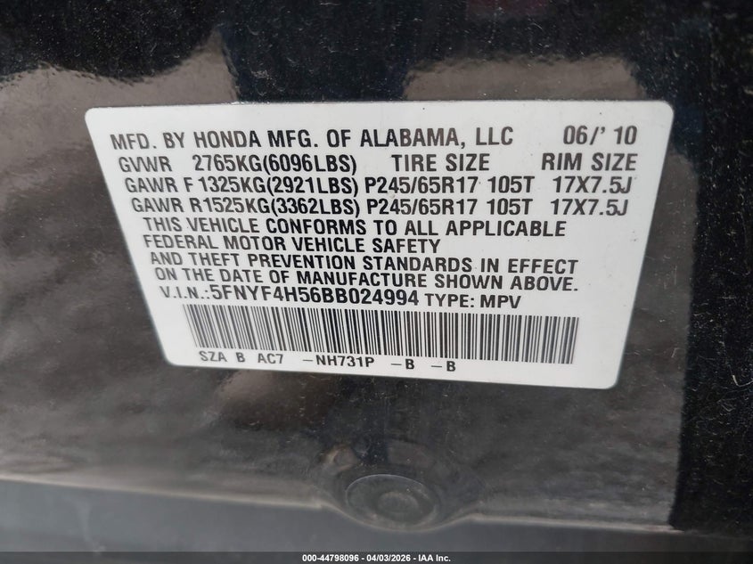 • 5FNYF4H56BB024994