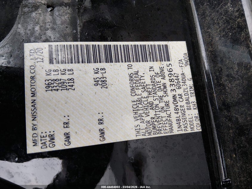 • 1N4BL4BV0MN338965