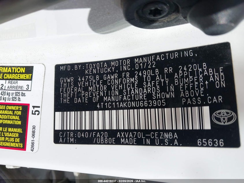 • 4T1C11AK0NU663905