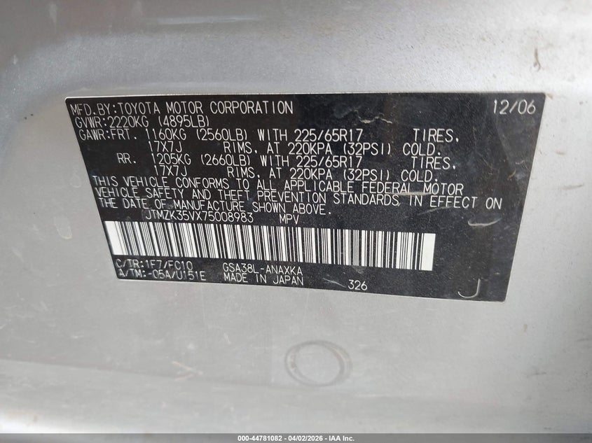 • JTMZK35VX75008983
