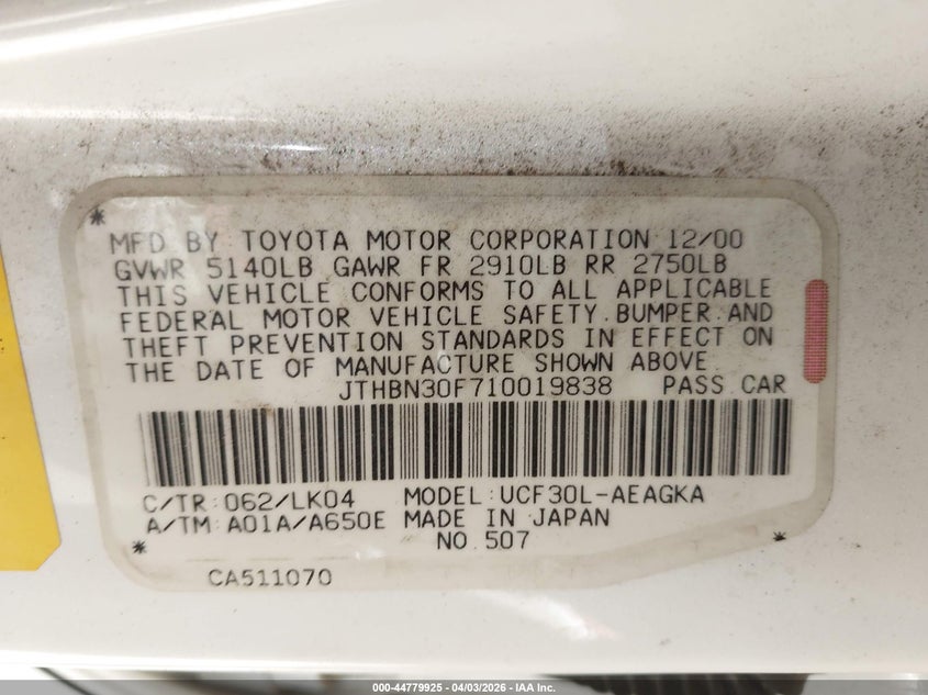 • JTHBN30F710019838
