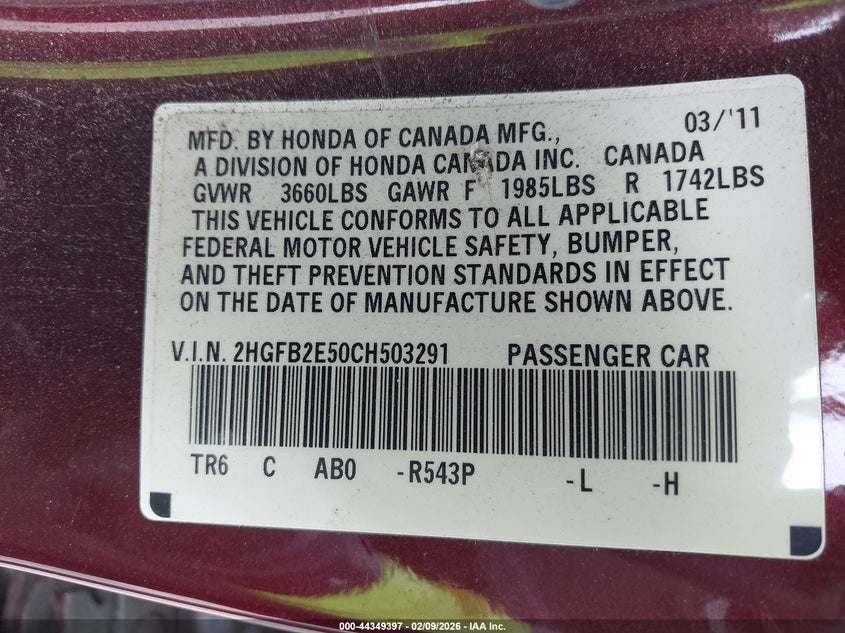 • 2HGFB2E50CH503291