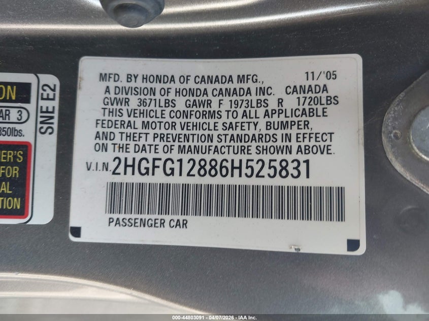 • 2HGFG12886H525831
