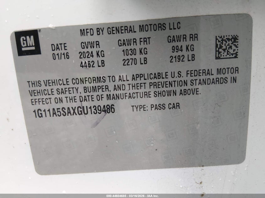 • 1G11A5SAXGU139486