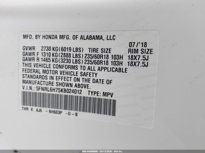 • 5FNRL6H75KB024012