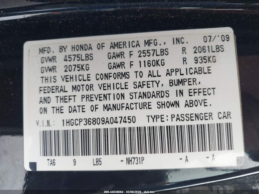 • 1HGCP36809A047450