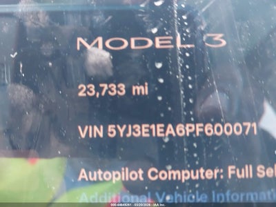 2023 TESLA MODEL 3 REAR-WHEEL DRIVE for Sale in Electric Vehicle Auctions, None