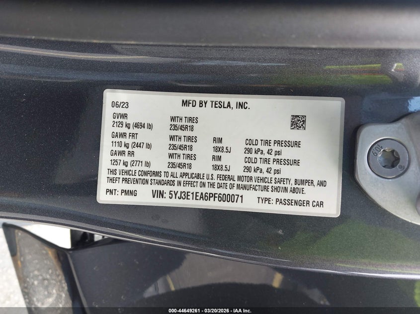 • 5YJ3E1EA6PF600071