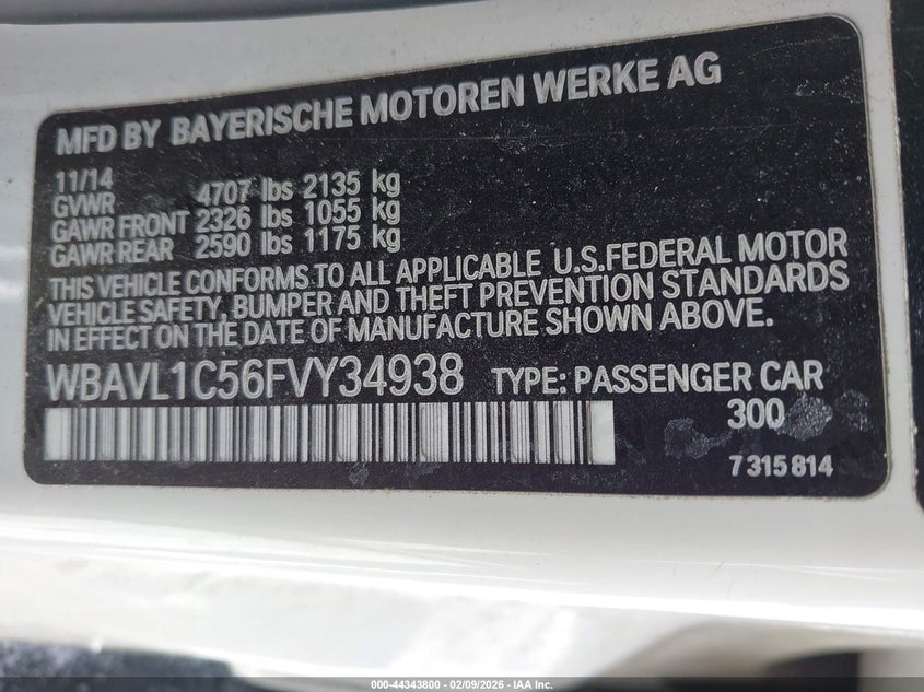 • WBAVL1C56FVY34938
