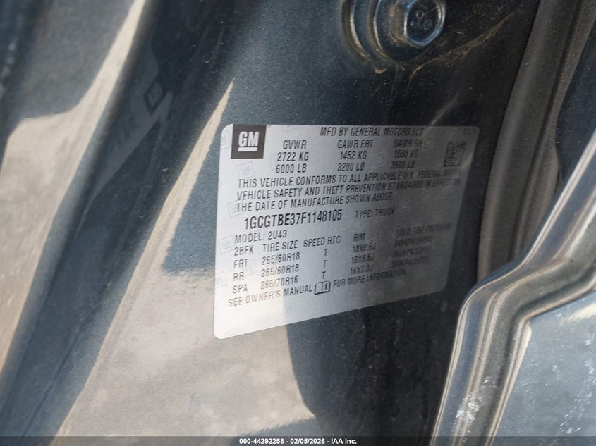 • 1GCGTBE37F1148105