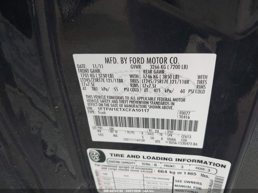 • 1FTFW1ETXCFA10117