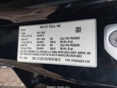 2025 TESLA MODEL 3 LONG RANGE REAR-WHEEL DRIVE/STANDARD REAR-WHEEL DRIVE for Sale in Electric Vehicle Auctions, None