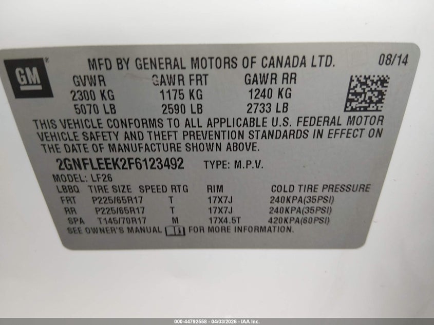 • 2GNFLEEK2F6123492