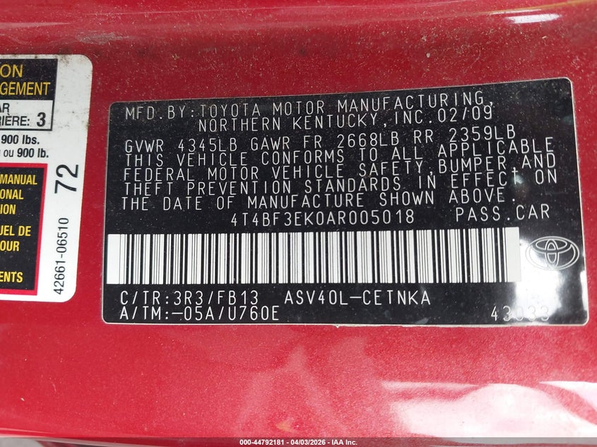 • 4T4BF3EK0AR005018