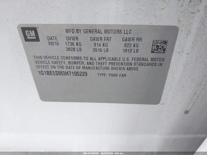 • 1G1BE5SM3H7105229