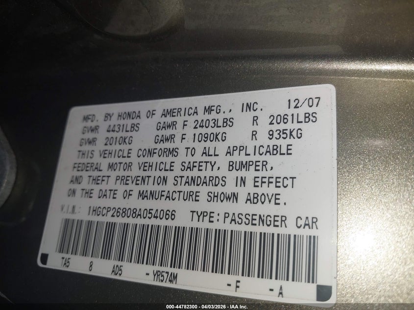 • 1HGCP26808A054066
